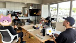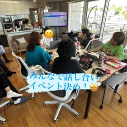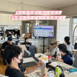 スタッフと一緒に今日の仕事を振り返り。
