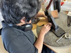 本日は革講習を行い、利用者の方々がコインケースづくりに挑戦しました。専用の道具を使って革に穴をあけたり、丁寧に組み立てを進めるなど、一つひとつの工程を真剣に取り組まれていました。初めての方も安心して学べる環境で、ものづくりの楽しさを実感いただけたようです。